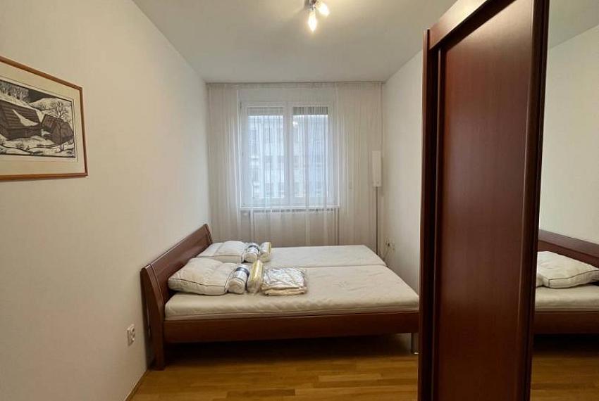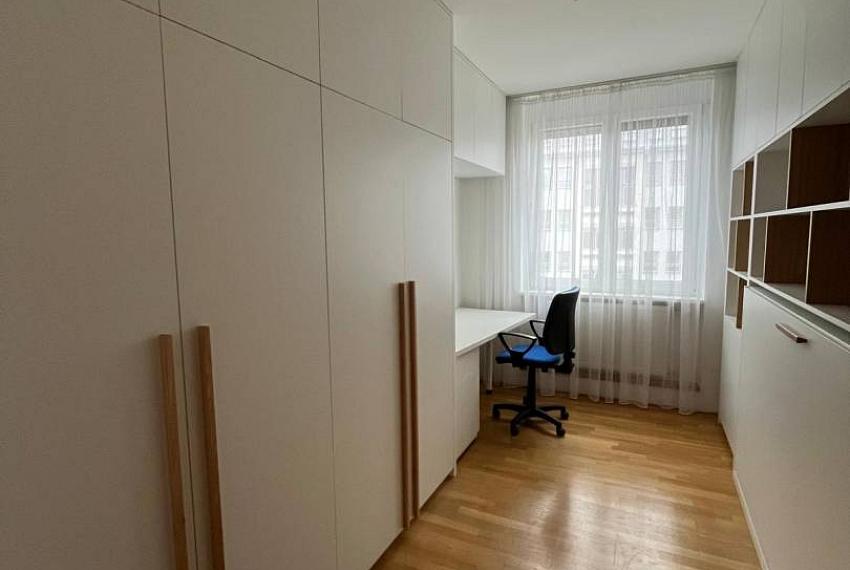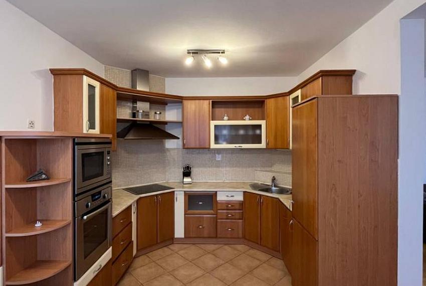 Plocha: úžitková 85m2 + zabezpečená murovaná pivnica v suteréne. Denná časť bytu pozostáva z obývačky a kuchyne, ktoré sú čiastočne prepojené. Byt má priestrannú loggiu orientovanú na slepú ulicu na V s výstupom z obývačky aj jedálne. Spálňa s manželskou posteľou, spálňovú skriňou. Tretia izba je pripravená na univerzálne použitie (pracovňa, detská izba, hosťovská izba) a je zariadená novým nábytkom s vyklápacou posteľou. Tieto izby sú orientované do tichej časti ulice. V byte sa nachádza samostatná miestnosť - šatník/komora. Vybavenie kúpeľne: klasická vaňa, sprchový kút, práčka, okno v kúpeľni. Vybavenie kuchyne: kuchynská linka vrátane vstavaných spotrebičov, jedáleň.