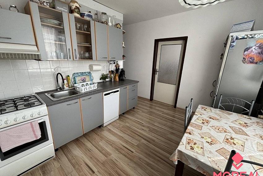 Ponúkame Vám na predaj 3 izbový byt Bošany na ulici Janka Kráľa. Byt je veľkometrážny má rozlohu 82m2. Nachádza sa na 3. poschodí z 5 s výťahom. Prešiel čiastočnou rekonštrukciou má vymenené okná za plastové , plávajúce podlahy , novšia kuchynská linka . Jadro je pôvodné umakart . Je tu vaňa wc je samostatné . Podlaha: plávajúca. Steny: omietky. Okná: plastové. Vybavenie kúpeľne: klasická vaňa. Oddelené WC. Vybavenie kuchyne: kuchynská linka, sporák.Stav objektu: čiastočná rekonštrukcia. Konštrukcia objektu: panelová. Kúrenie: centrálne. Ostatné vybavenie: internet. Zabezpečenie bezpečnostnými dverami.Výhody: slnečný, pekný výhľad, tiché prostredie, obchody, škola, škôlka, zateplený bytový dom.