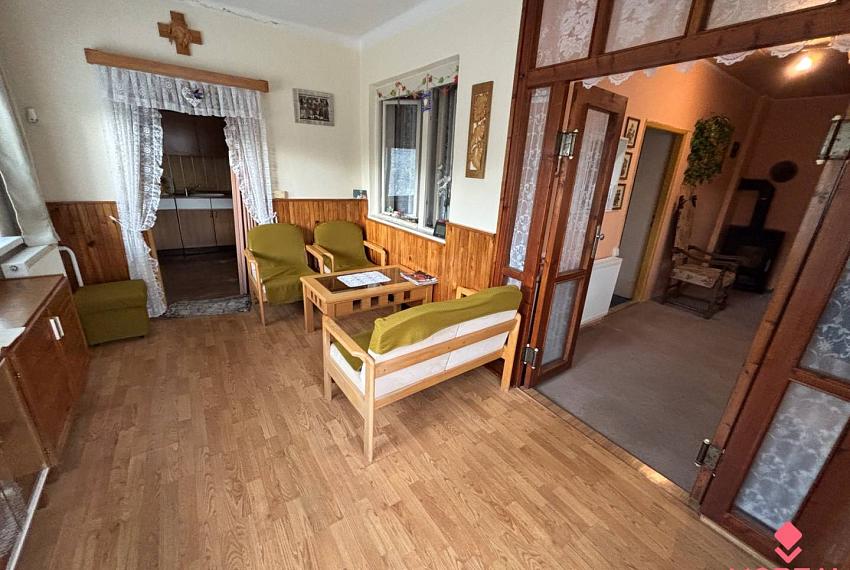 Ponúkame Vám na predaj zachovalý rodinný dom v obci Kamanová . Jedná sa o zachovalý rodinný dom postavený z pálenej tehly malá časť i z nepálenej tehly na pozemku o rozlohe 2278 m2. Dom je v zachovalom stave. Má 3 izby , kúpeľňa wc , špajza . Kúrenie v dome je ústredné plynové aj krbové kachle na pevné palivo . Okná sú aj plastové . Podlahy sú betón dlažba, plávajúce podlahy . Steny majú omietky. Vybavenie kúpeľne: sprchový kút . Oddelené WC. Ohrev vody je el.bojler . Vybavenie kuchyne: kuchynská linka, sporák.Stav objektu: pôvodný stav. Konštrukcia objektu: zmiešaná ..Strešná krytina: škridla . Asfaltová prístupová cesta. Žiadne podpivničenie. Na pozemku sa nachádza elektrická prípojka, plynová prípojka, studňa ,verejný vodovod je pred domom . Výhody: slnečný, pekný výhľad, tiché prostredie, zastávka autobusu, dieľňa.