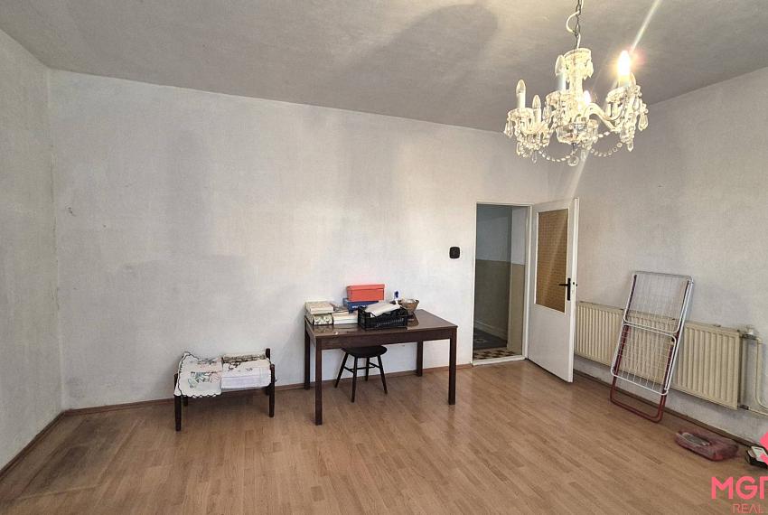Ponúkam na predaj rodinný dom v obci Kamanová, okr. Topoľčany. Plocha: úžitková 120m2, pozemku 742m2. Rodinný dom z roku cca 1968 je postavený z pálenej tehly, je po čiastočnej rekonštrukcii - výmena okien za plastové v roku 2019, zateplenie fasády (polystyrén 5a 8cm + kleber) v roku 2022. Nachádza sa na pravidelnom 7,4ár oplotenom pozemku. Na pozemku sa nachádza hospodárska budova - sklad, letná kuchyňa a garáž s montážnou jamou a drobné hosp. stavby - chlievy. Dom je čiastočne podpivničený - kotolňa, sklad, dielňa. Dispozícia: zádverie so vstupom do pivnice, chodba, malá izba, kuchyňa, kúpeľňa s vaňou, samostatné WC, špajza s výstupom na poval, obývačka, izba prechodná do spálne. V dome je komín. Vykurovanie zabezpečuje plyn. kotol a plechové radiátory. Podlaha: dlažba, betón a lino. Steny: omietky. Vybavenie kúpeľne: klasická vaňa. Vybavenie kuchyne: kuchynská linka, sporák, chladnička.Stav objektu: čiastočná rekonštrukcia. Konštrukcia objektu: tehla. Kúrenie: plynové. Sedlová strecha. Strešná krytina: škridla. Rovinatý pozemok. Asfaltová prístupová cesta. Čiastočné podpivničenie. Na pozemku sa nachádza vodovod, elektrická prípojka, plynová prípojka. Na pozemku sa nachádza studňa. Na pozemku sa nachádza žumpa.Výhody: slnečný, pekný výhľad, tiché prostredie, obchody. Cena 134.800 €