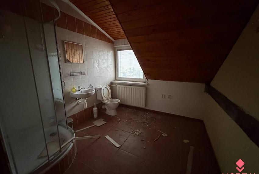 Ponúkame Vám na predaj veľký rodinný dom v podhorskej obci Podhradie na hlavnej trase . Plocha: úžitková 250m2 je , zastavaná 160m2 na pozemku 1118m2. Podlahy v dome sú dlažba. Steny majú stierky stierky. Okná sú plastové. Na prízemí je vstupná chodba , hala , izba s kúpeľňou , obývačka , kuchyňa , ďalšia izba s kúpeľňou . Na poschodí prebiehala rekonštrukcia , boli vybúrané podlahy . Sú tu 4 izby a každá ma svoju kúpeľňu s wc . Vybavenie kúpeľne: sprchovací kút. Oddelené WC. Vybavenie kuchyne: kuchynská linka, sporák.Stav objektu: čiastočná rekonštrukcia. Konštrukcia objektu: kvádrová. Kúrenie: centrálne v obývačke krb na pevné palivo , alarm . Zabezpečenie bezpečnostnými dverami.Strešná krytina: škridplech. Mierne svahovitý pozemok. Asfaltová prístupová cesta. Čiastočné podpivničenie. Na pozemku sa nachádza vodovod, elektrická prípojka, plynová prípojka.Výhody: slnečný, pekný výhľad, tiché prostredie, škola, škôlka, krb. Cena 166 tis eur