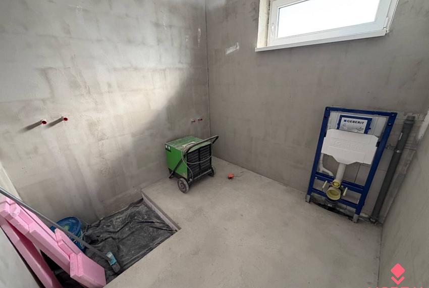 Ponúkame vám na predaj novostavbu rodinného domu vo Veľkých Ripňanoch v tichej ulici obce . Jedná sa o novostavbu bungalovu postaveného v roku 2025 z ytongu na peknom rovinatom pozemku o rozlohe 711 m2 . Dom má výbornú obľúbenú dispozíciu . Vstupná chodba má vchod do šatníka , samostatné wc s umývadlo , má 3 samostatné izby plus kuchyňa prepojená s obývačkou . Kuchyňa ma i špajzu . Kúpeľňa má predprípravu na sprchovací kút vaňu , wc , 2x umývadlo . Technická miestnosť má prípravu pre práčku a sušičku, server , výlez na pochôznu podstrešný priestor . Kúrenie v celom dome je podlahové telovodné - elektrický kotol . Na oknách je predpríprava na vonkajšie žalúzie . Oplotený celý pozemok okrem prednej brány . Voda v dome je z verejného vodovodu , pripojené na elektrinu a odpad vedený do kanalizácie .