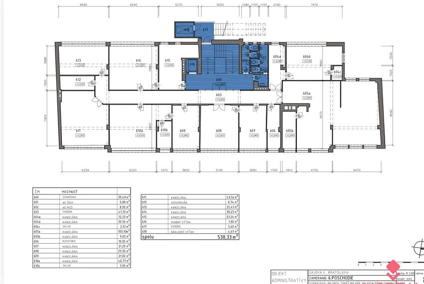 Priestory č. 604 (a,b,c) od 12,50Eur/m2/mes + služby a energie 4,50Eur/m2/mes + DPH. Províziu RK neplatíte!