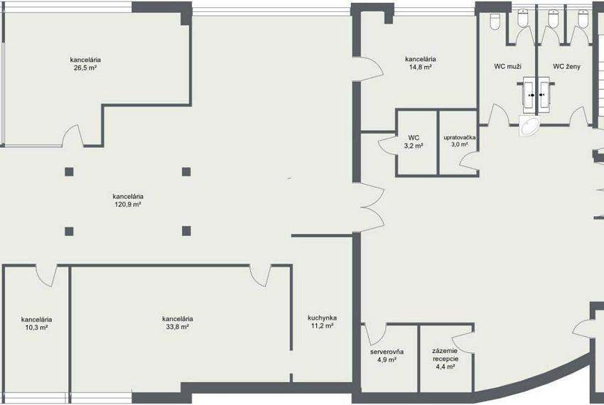 Na prízemí v administratívnej budovy na Gagarinovej ulici v Bratislave ponúkame na prenájom kancelársky priestor o celkovej výmere 260 m². V priestore je 5 kancelárií od výmery 10 m2 do 34 m2, otvorený priestor 121 m2, serverovňa, kuchynka, WC muži, ženy. Priestory sú vybavené klimatizáciou, štruktúrovanou kabelážou, zabezpečenie alarmom. Cena prenájmu je 8,50 Eur/m2/mesiac m², Servisné poplatky 1,20 €/m2/mesiac energie cca 2,20€/m2/mesiac, parkovacie státie nekryté 59,- Eur/miesto/mesiac, kryté 69,- Eur/miesto/mesiac, garážové státie 79,- Eur/miesto/mesiac. Suma je uvádzaná bez DPH. Elektrika a voda je hradená podľa spotreby zaznamenanej vlastným elektromerom a vodomerom.