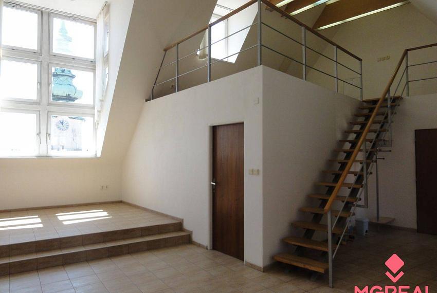 Ponúkame Vám na prenájom podkrovné kancelárske priestory nachádzajúce sa na 4.p. budovy v Bratislave - Staré mesto s výhľadom na Michalskú vežu a dóm sv. Martina s celkovou výmerou 82 m2. Budova prešla čiastočnou rekonštrukciou, nachádza sa v nej aj výťah. Priestor sa skladá s dvojúrovňového kancelárskeho priestoru s výmerou 60 m2 prepojeného schodiskom, kuchynky 10 m2, WC 7 m2 a malého skladu 5 m2. Priestor je vybavený samostatným meraním el. energie, vody a podlahovým vykurovaním. Cena 700 €/mesiac + DPH + služby a energie. Pre neplátcov DPH možno účtovať cenu nájmu bez DPH. Províziu neplatíte. Voľné od 1.8.2025.