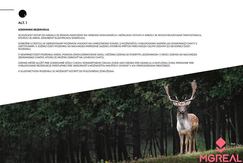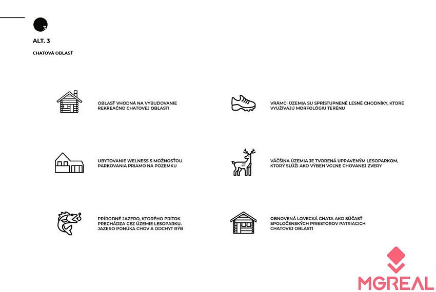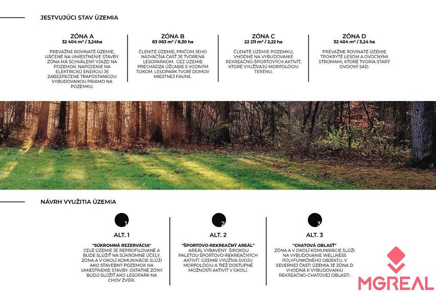 V severnej časti pozemku je možnosť vybudovania rozsiahlejšej rekreačno - chatovej oblasti. Priestorové možnosti územia dovoľujú použiť rôzne veľkosti pozemkov.