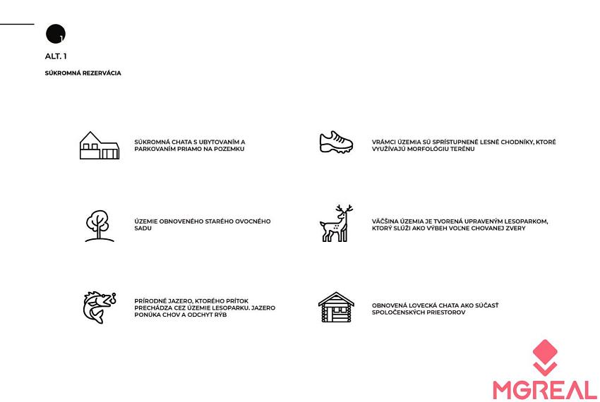 forma lesoparku dáva možnosť vybudovania súkromnej obory a chovu zveri, s možnosťou celoročného ubytovania