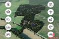 Prevažne rovinaté územie pokryté lesom a ovocnými stromami, ktoré tvoria starý ovocný sad