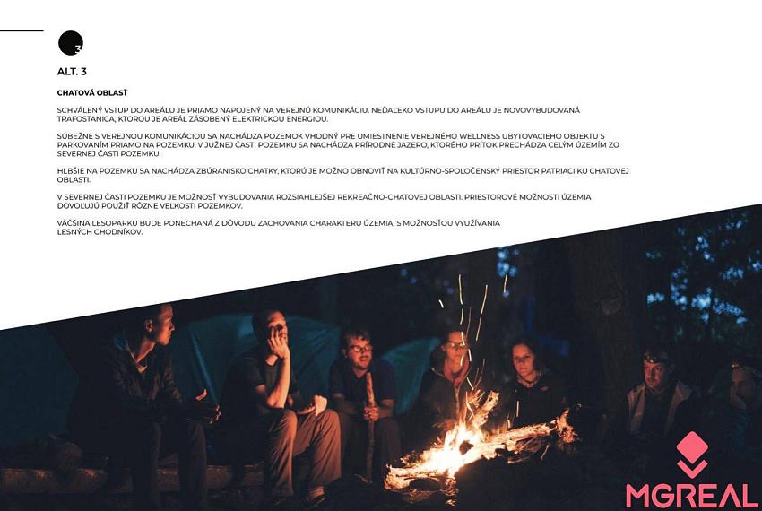 Súbežne s verejnou komunikáciou sa nachádza pozemok vhodný pre umiestenie verejného wellness ubytovacieho objektu s parkovanim priamo na pozemku. V južnej časti pozemku sa nachádza prirodné jazero, ktorého pritok prechádza celým územím zo severnej časti pozemku.